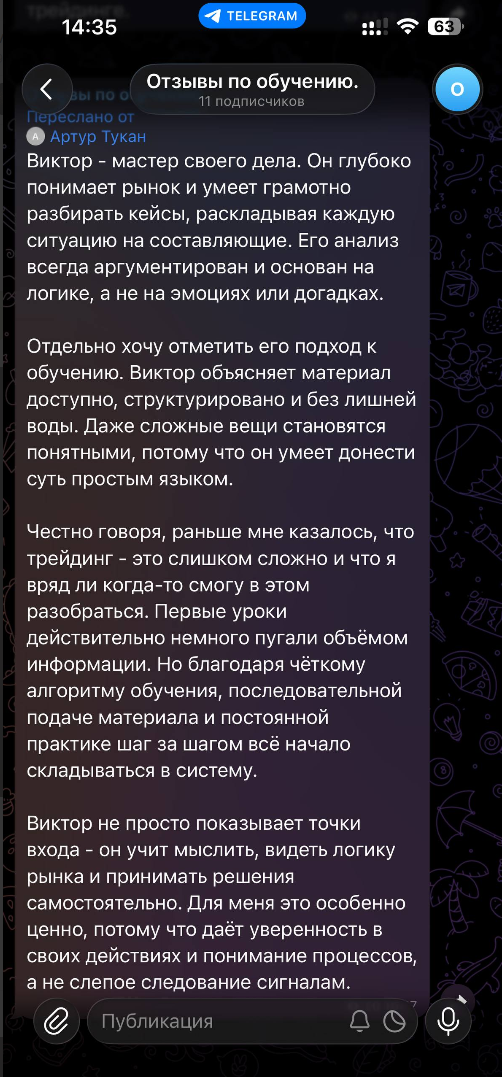Получил ещё один отзыв по обучению.И каждый раз я вижу одну и ту же мысль — людям становится понятно, что именно они делают на рынке.Не «вход по чуйке».Не хаотичные сигна..