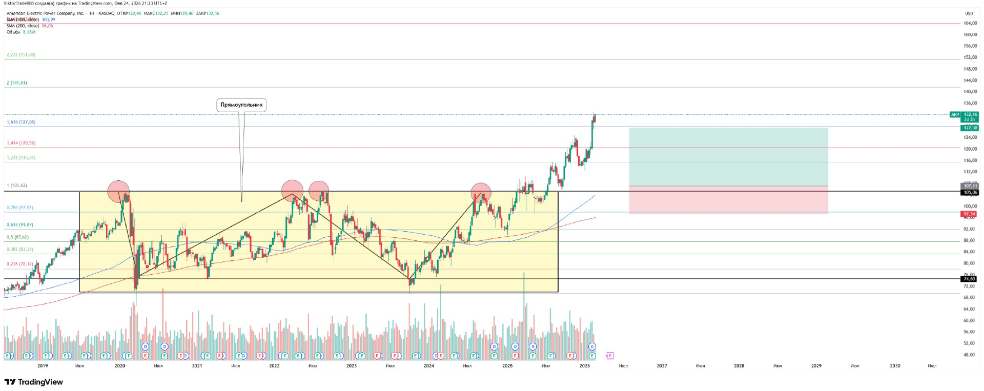 American Electric Power Company Inc +1857 пунктов , сделка закрылась по тейк-профиту