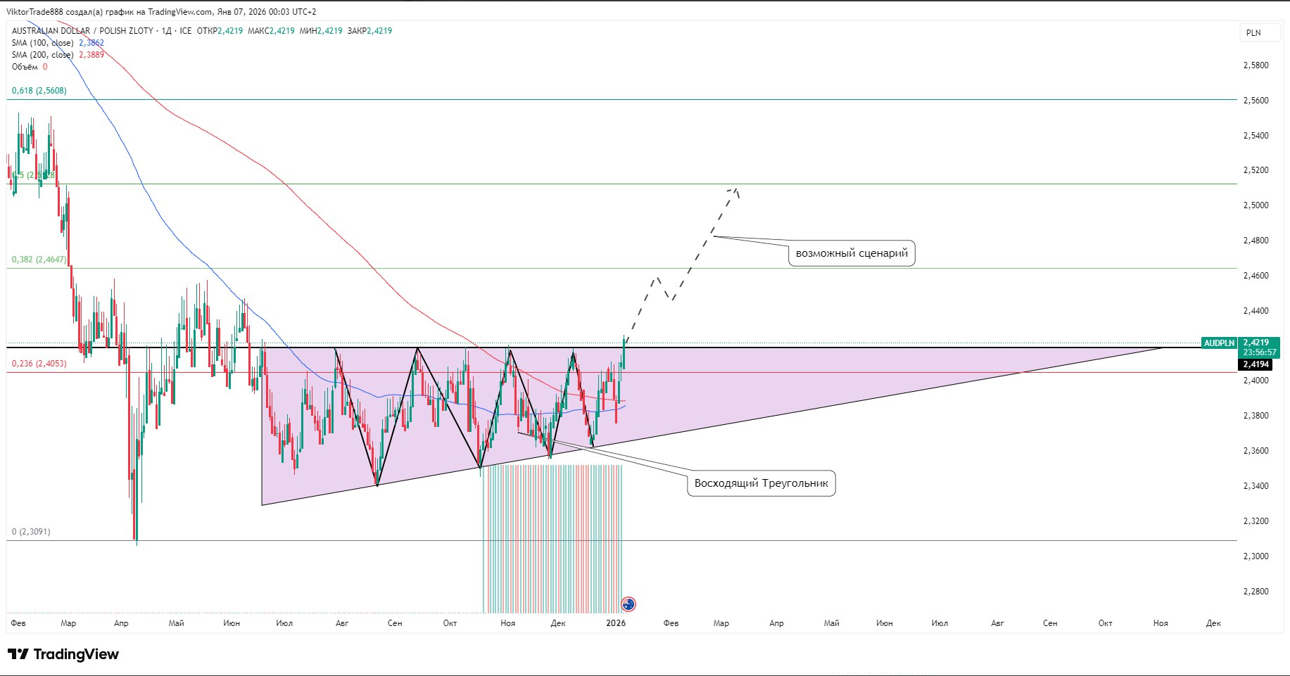 По паре австралийский доллар / польский злотый (AUD/PLN) на дневном таймфрейме сформировался структурный паттерн «восходящий треугольник».