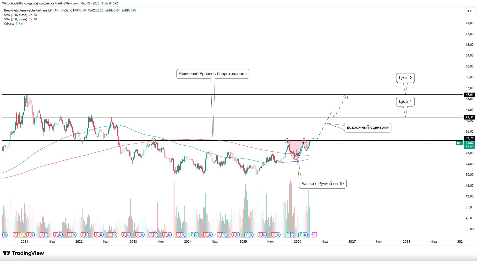 В случае, если уровень 32.76 будет пробит на недельном таймфрейме и цена закрепится выше, можно рассмотреть лонг-позицию.
