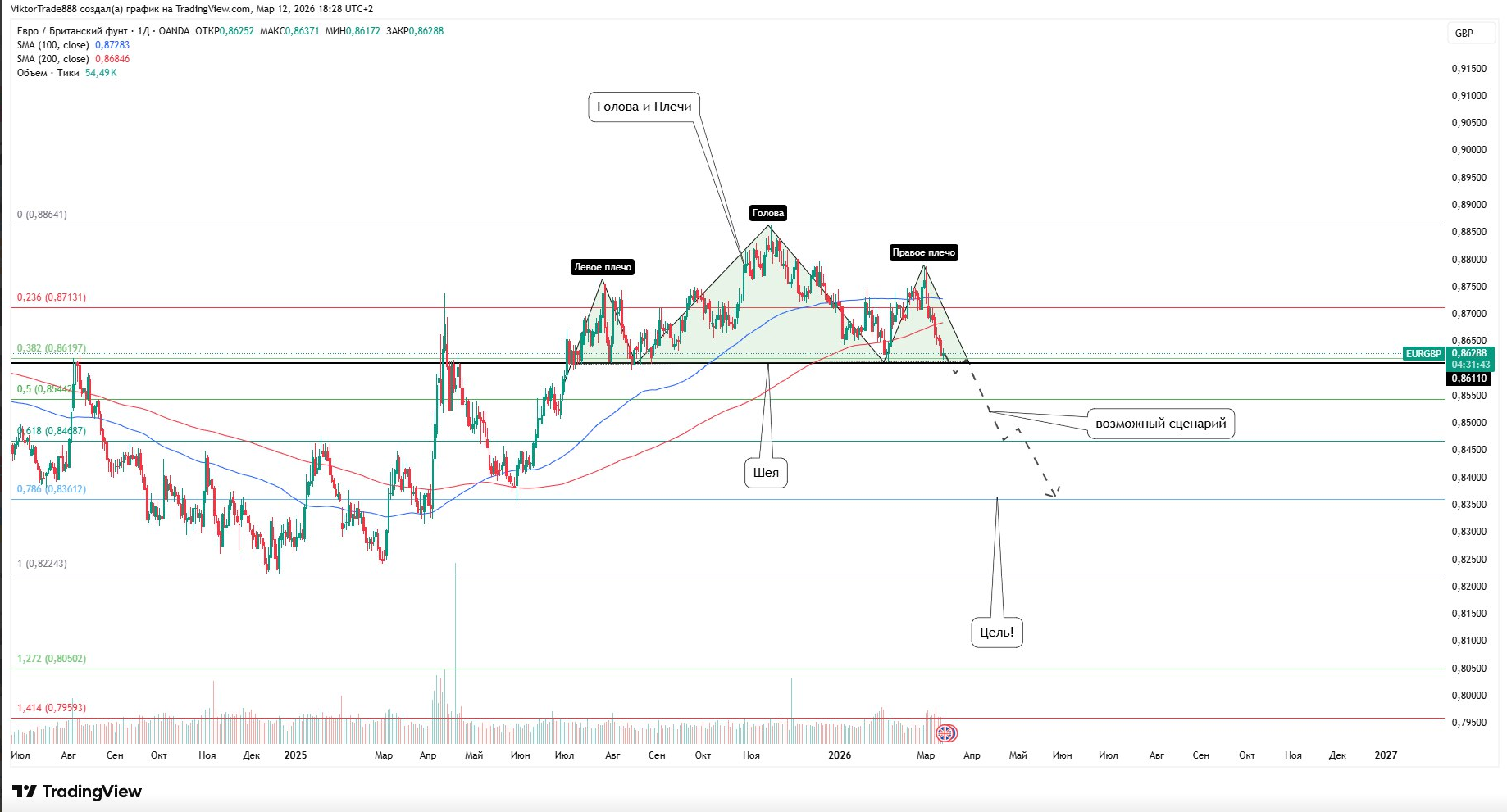 На дневном таймфрейме после восходящего тренда сформировался паттерн «голова и плечи».