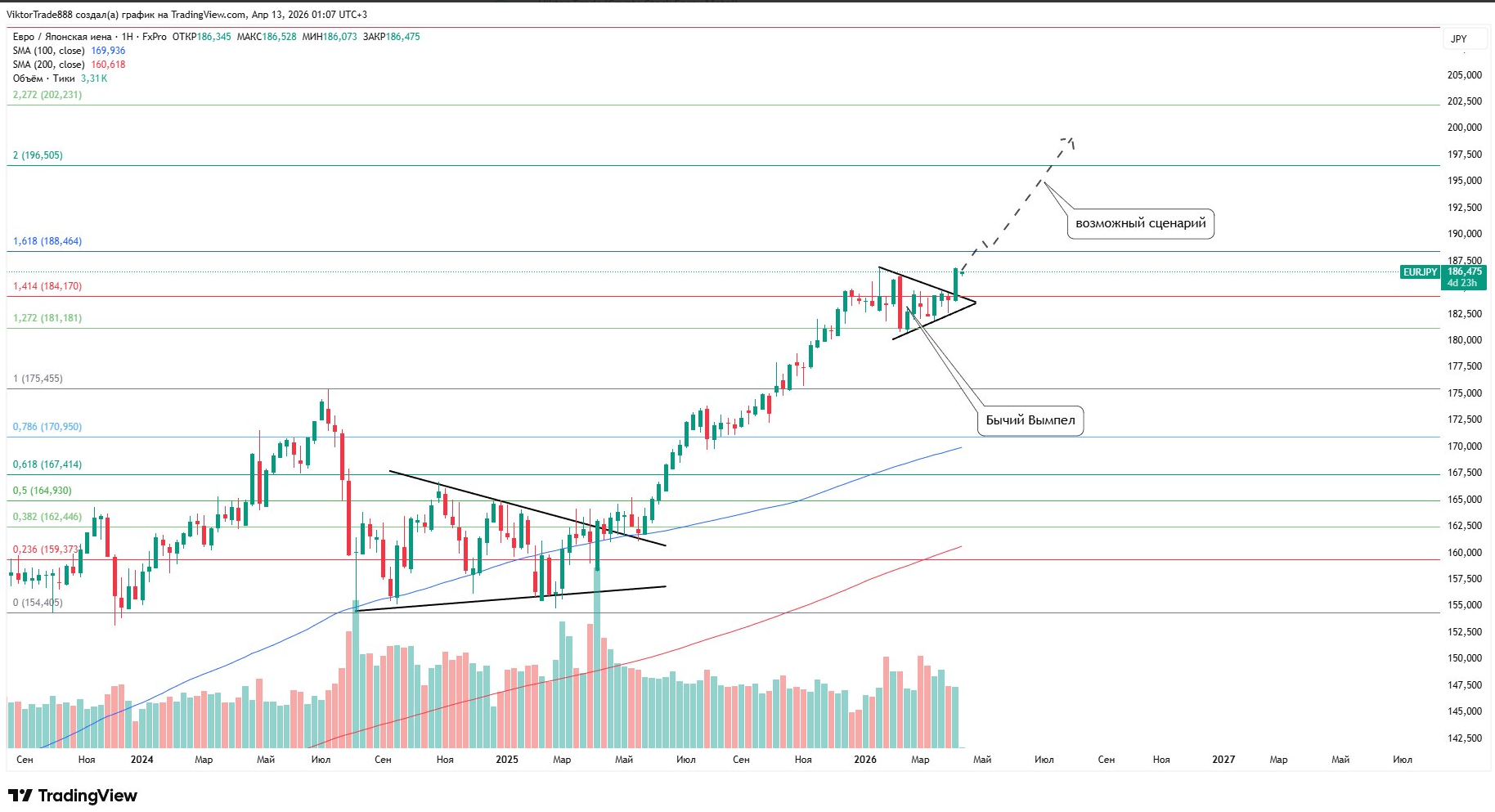 Валютная пара EUR/USD.Сформировался медвежий вымпел, что может указывать на продолжение нисходящего движения. Текущая структура остаётся под давлением продавцов.Боль..