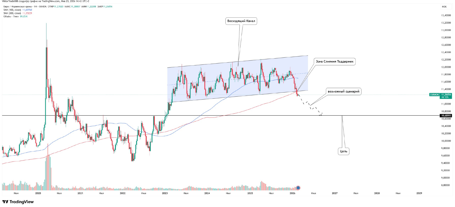 На недельном таймфрейме по валютной паре EUR/NOK был сформирован восходящий канал.