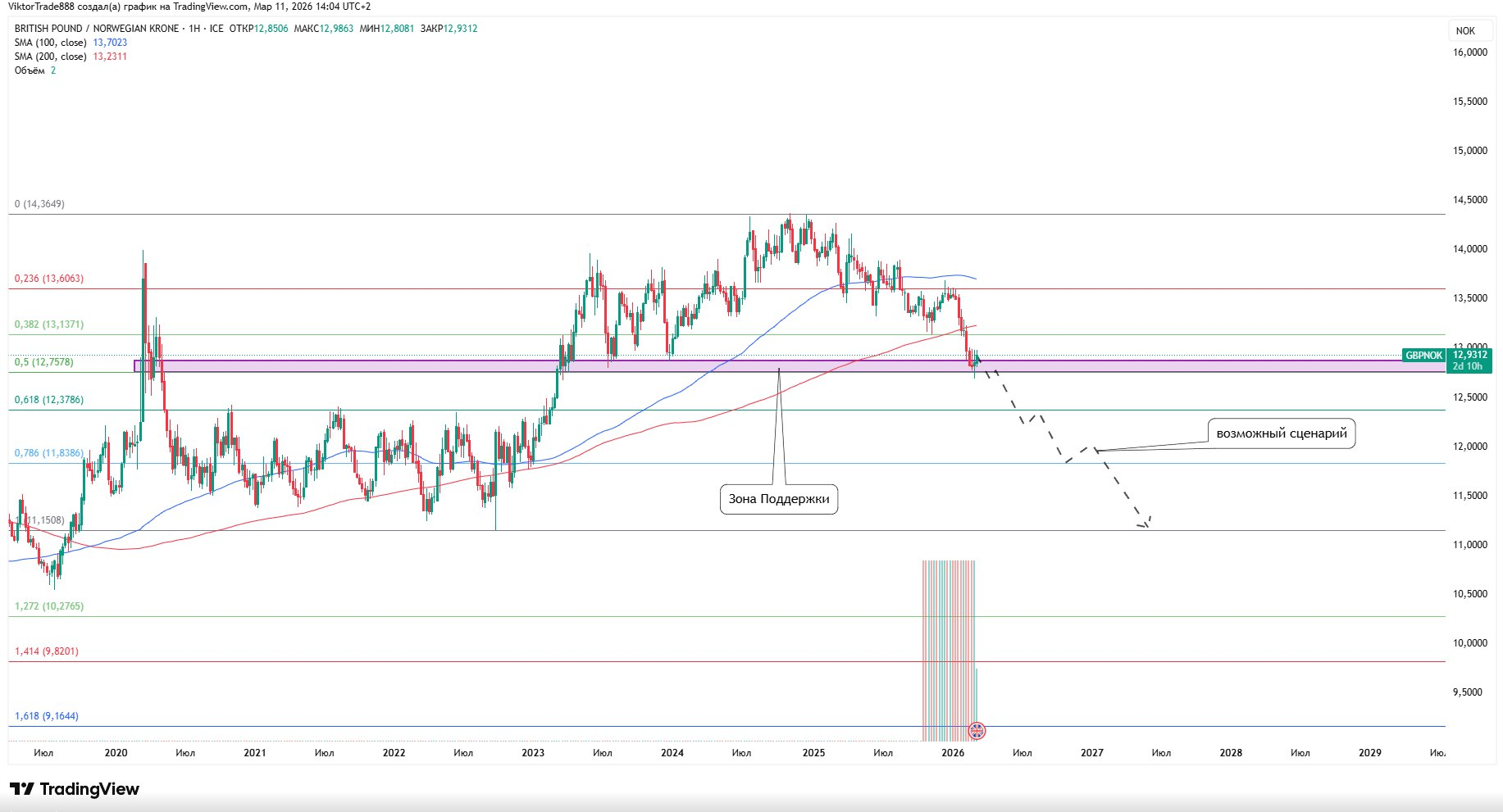 — если цена пробьёт уровень поддержки и закрепится ниже,
