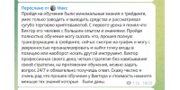 Понравился весь процесс обучения ‚и если б можно было повторить или провести время подобно тем нашим 200т конференциям ‚слушая разборы и обсуждения того ‚что касается трейдинга ло поучаствовал бы с радостью.