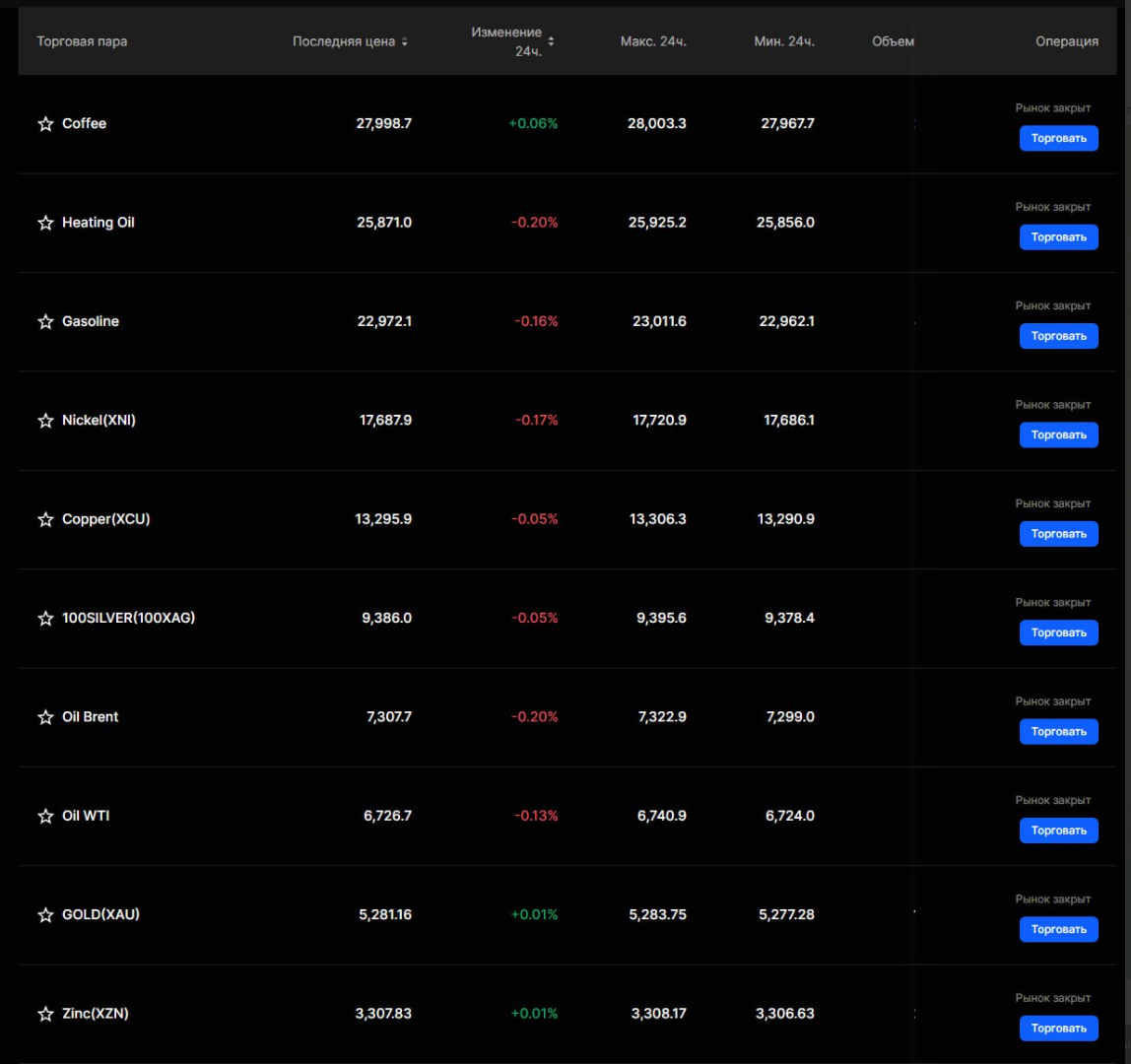 • торговлю сырьевыми активами к USDT
