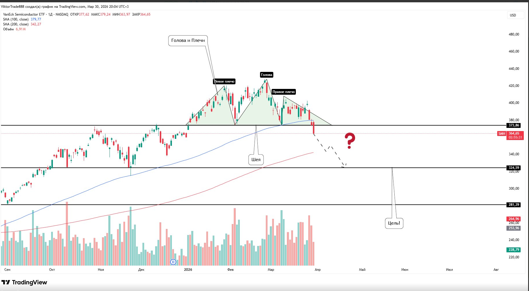На дневном таймфрейме после мощного устойчивого восходящего тренда сформировался разворотный паттерн «голова и плечи».